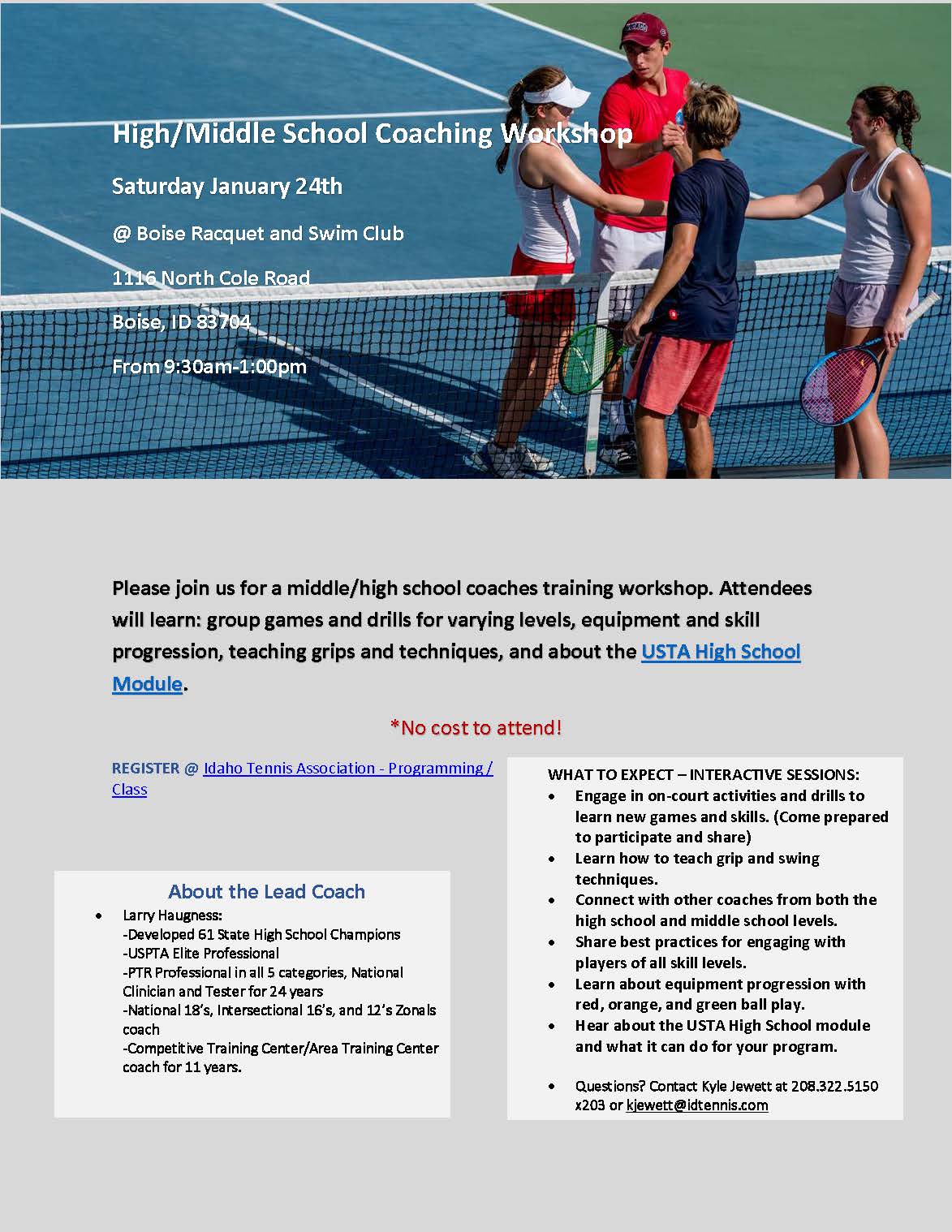 FREE High School/Middle School Tennis Coaches Workshop